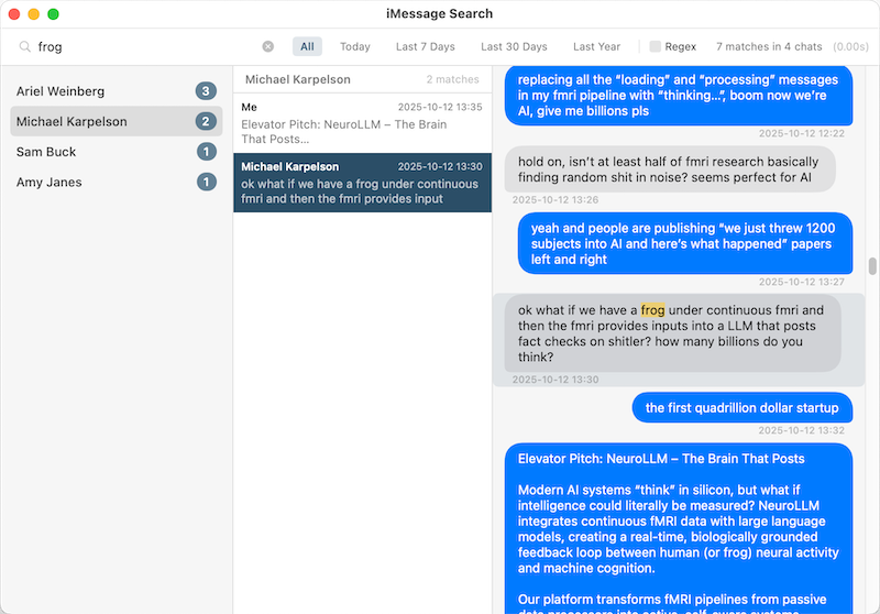 Search for iMessage, because the one in Messages is so bad. - dmd/imessage-search